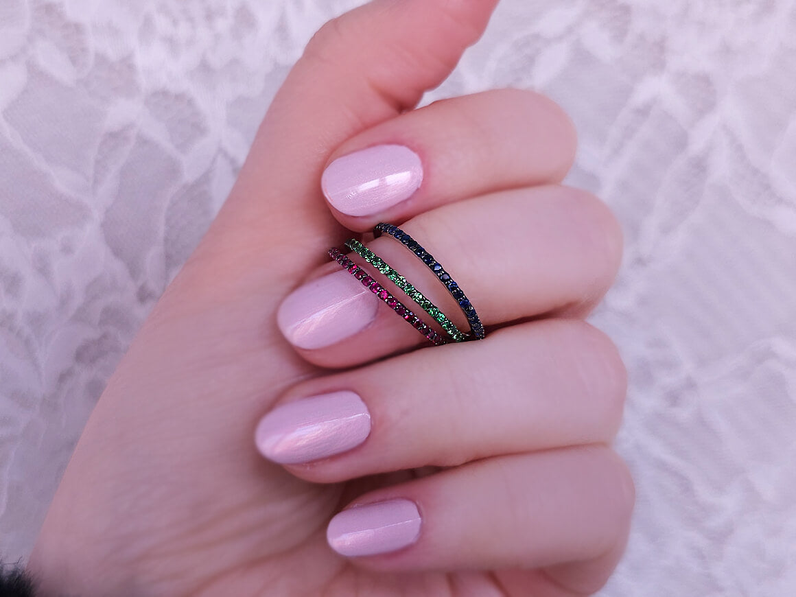 3-piece wrap-around ring with ruby, sapphire, and tsavorites in 14K gold