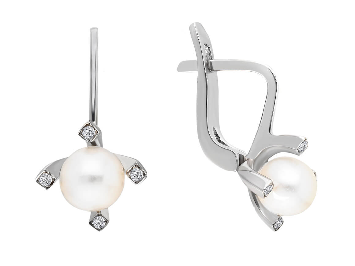Diamond and natural pearl earrings in 333 8 carat white gold