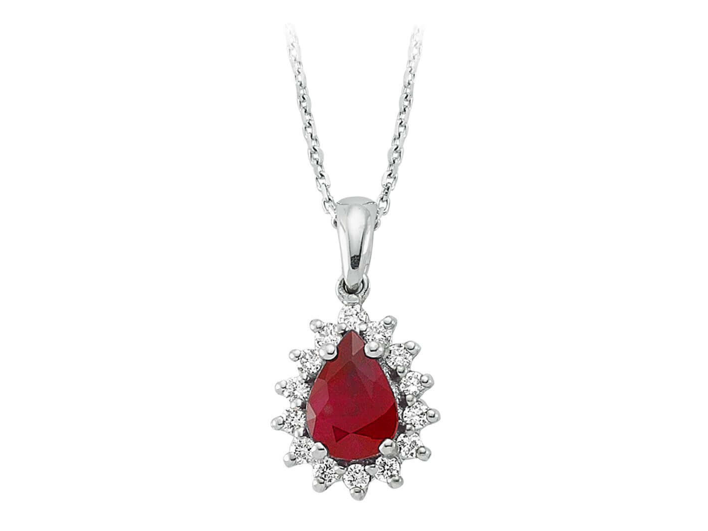 Diamant und Tropfen Rubin Collier in 585er 14 Karat Weißgold