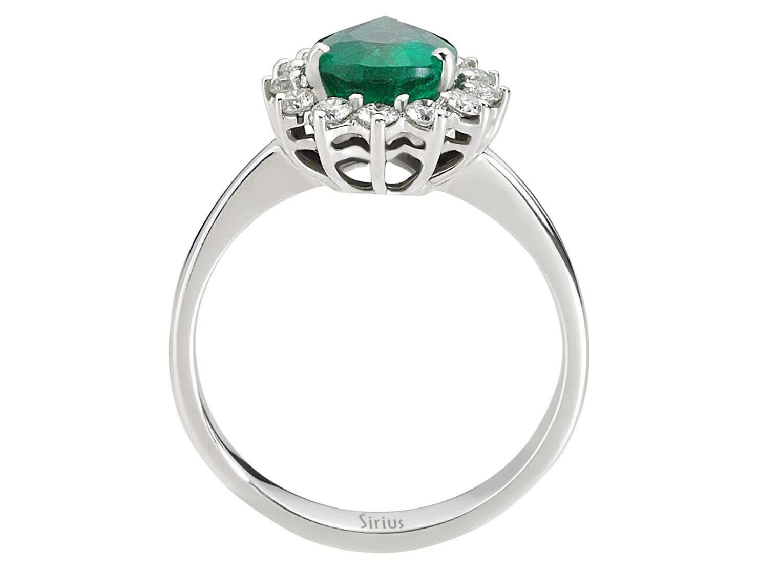 Diamant und Tropfen Smaragd Ring in 585er 14 Karat Weißgold