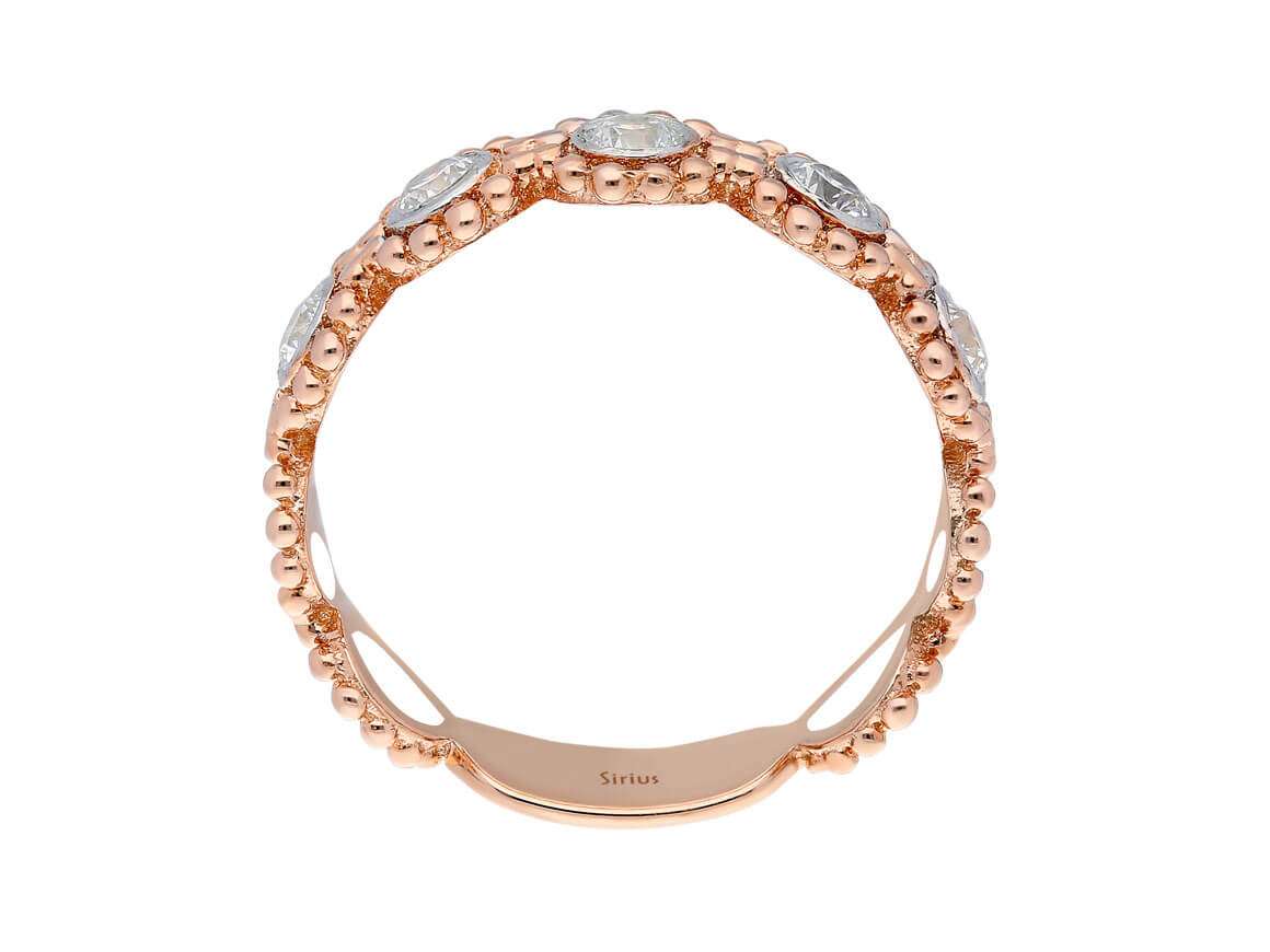 G Farbe 0,35 Carat 5 Diamanten Vintage zyklische Allianz in 585er 14 Karat Rotgold