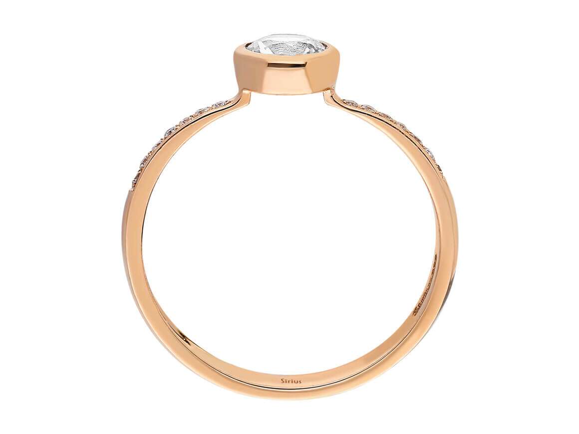 Diamant und Weißer Topas Solitär Ring in 585er 14K Rotgold