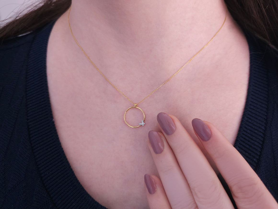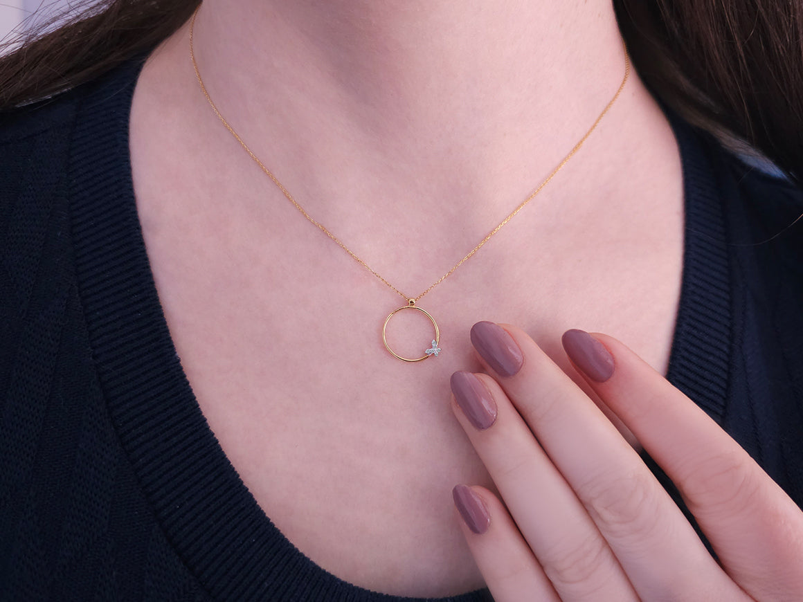 Collier papillon en or jaune et blanc 14 carats avec diamants de 0,04 carat