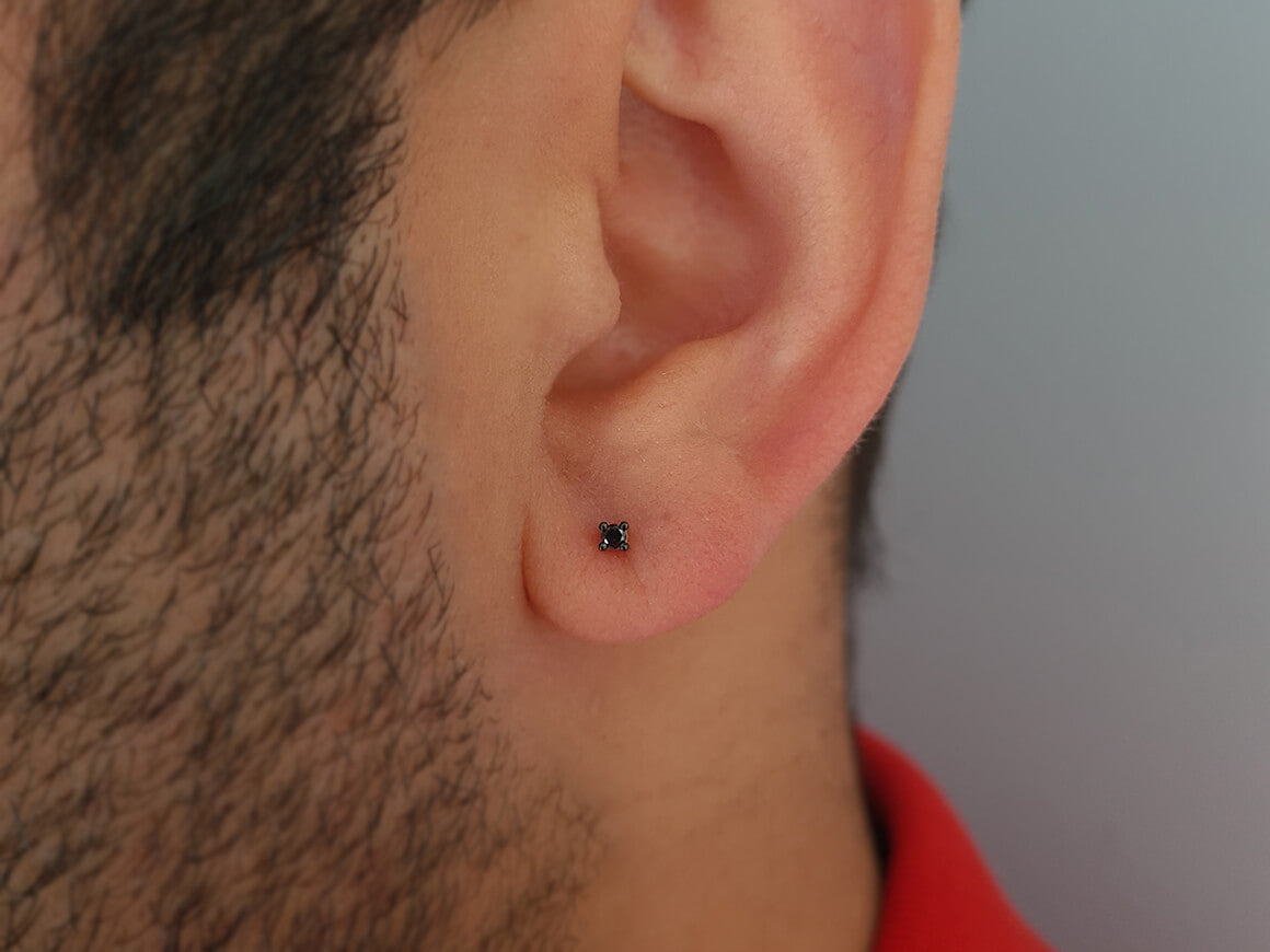 Boucle d'oreille homme solitaire diamant noir 0,04 carat en or blanc 585 14 carats