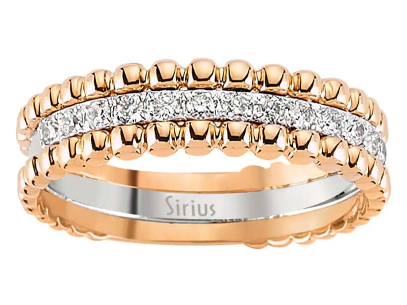 Alliance demi-ronde trois pièces en or blanc et rouge 14 carats avec diamants de 0,24 carat au total