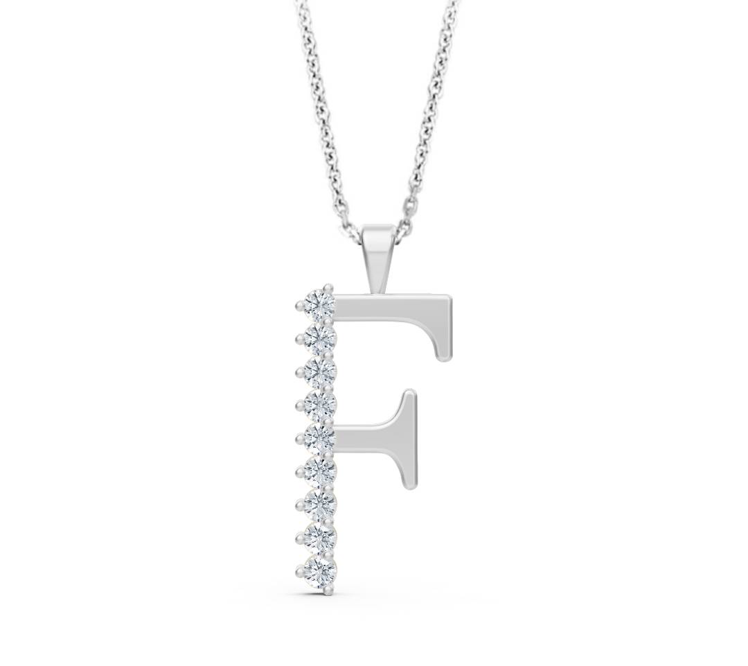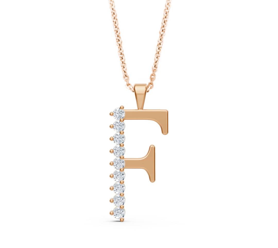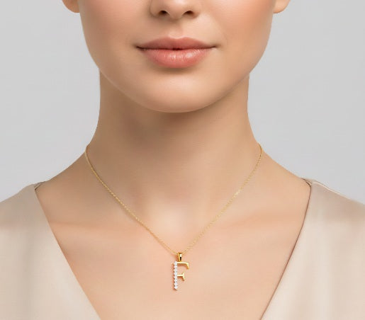 Setzen Sie ein individuelles Statement mit dieser exquisiten Halskette, die durch einen elegant geformten Buchstaben-Anhänger „F“ besticht. Das Schmuckstück ist aus hochwertigem 14-karätigem Gelbgold gefertigt, dessen warmer Glanz die zeitlose Gestaltung unterstreicht. Der Buchstabe ist kunstvoll mit acht funkelnden, echten Diamanten besetzt, die für eine beeindruckende Lichtbrechung und luxuriöse Ausstrahlung sorgen.