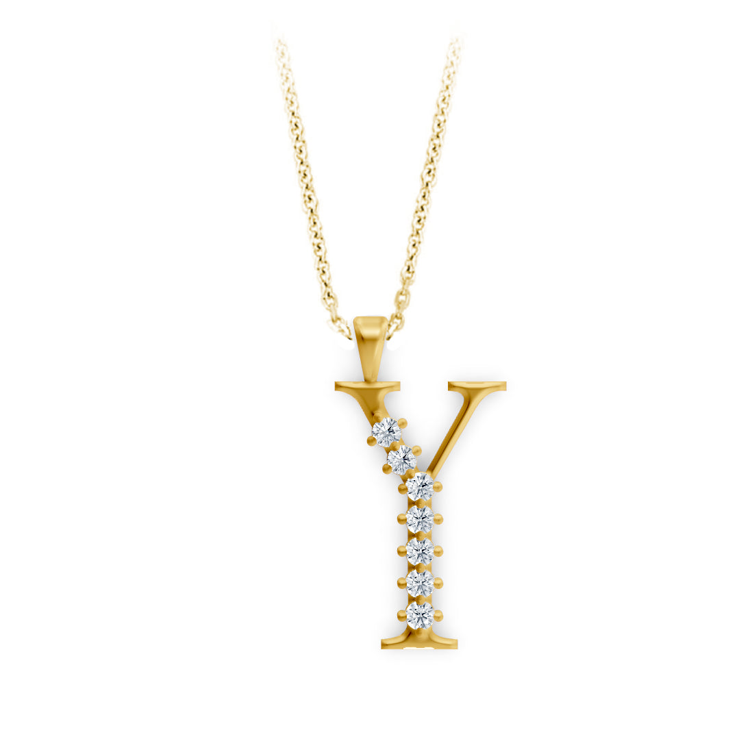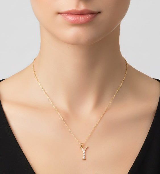 Setzen Sie ein luxuriöses Statement mit dieser exquisiten Halskette, die durch den eleganten Buchstaben-Anhänger „Y“ besticht. Das Schmuckstück ist meisterhaft aus hochwertigem 14-karätigem Gelbgold gefertigt. Die filigrane Form des Buchstabens wird durch beeindruckende 14 funkelnde, echte Diamanten veredelt, die das Licht aus jedem Winkel perfekt einfangen.