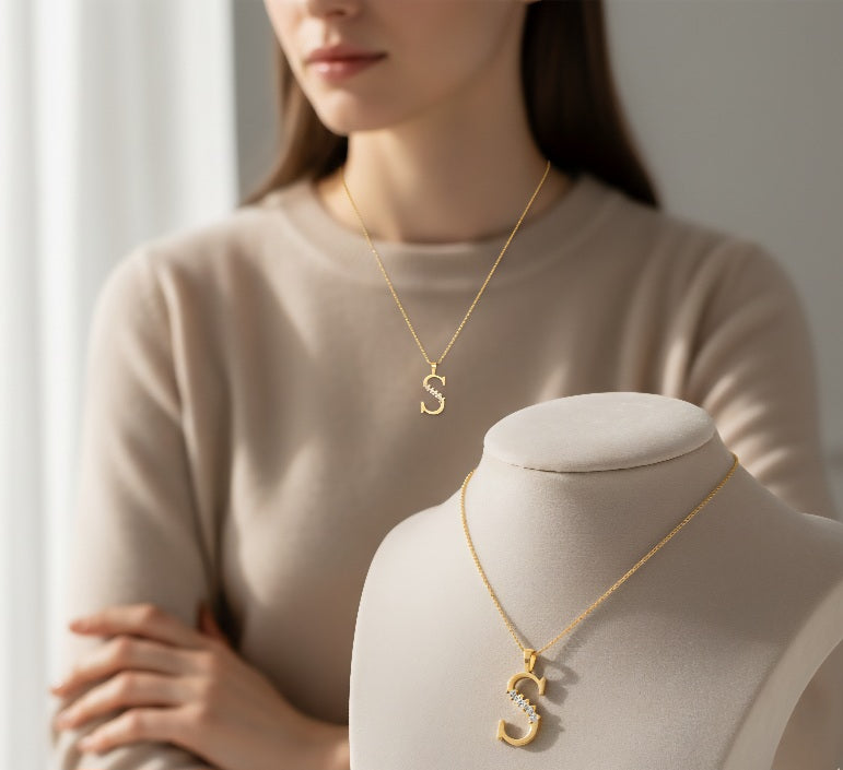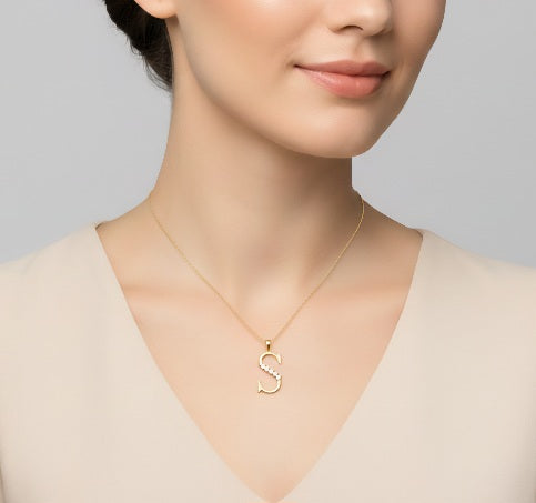 Edle Buchstaben-Halskette S aus 14 Karat Gelbgold mit echten Diamanten