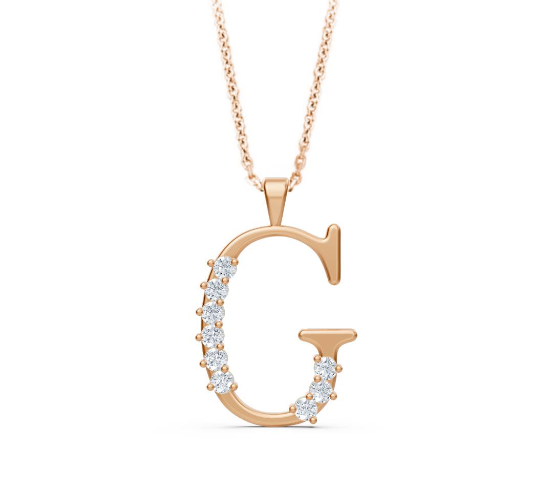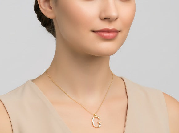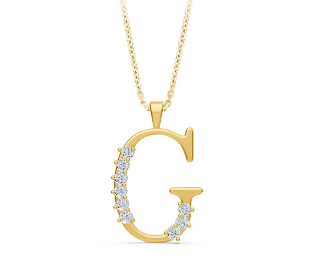 Elegante Buchstaben-Halskette G aus 14 Karat Gelbgold mit echten Diamanten