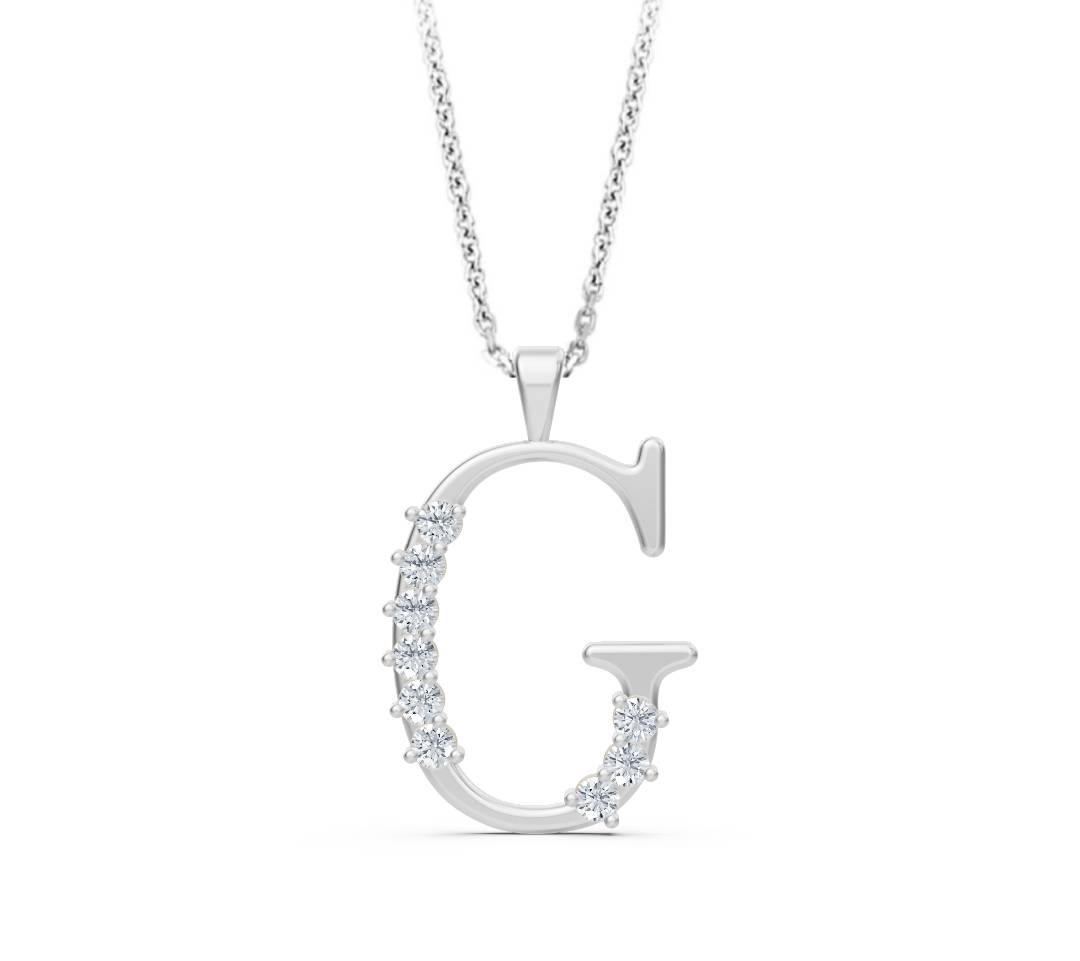 Verleihen Sie Ihrem Auftritt eine persönliche und luxuriöse Note mit dieser handgefertigten Halskette mit dem Buchstaben-Anhänger „G“. Gefertigt aus massivem 14-karätigem Gelbgold, besticht dieses Schmuckstück durch seine hochwertige Verarbeitung und seinen strahlenden Glanz. Der Buchstabe ist kunstvoll mit acht funkelnden, echten Diamanten im Rundschliff besetzt, die für eine beeindruckende Lichtreflexion sorgen.