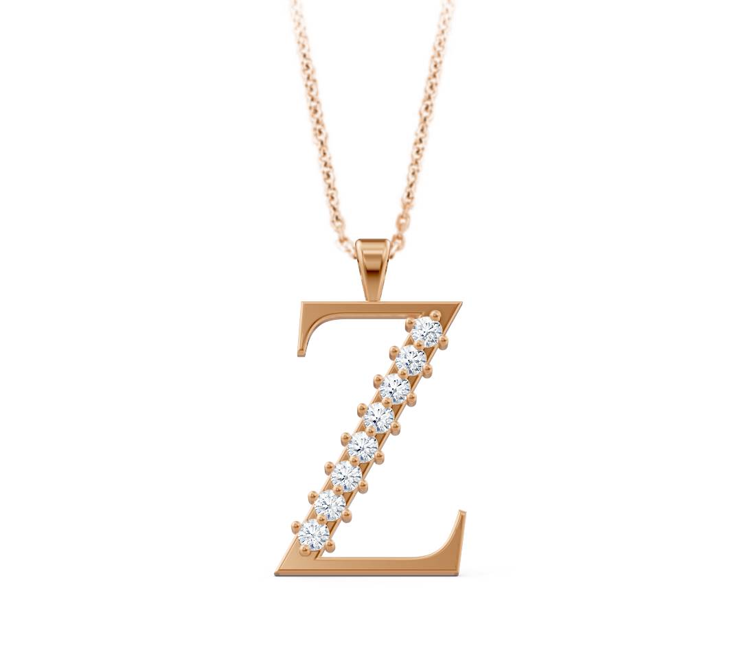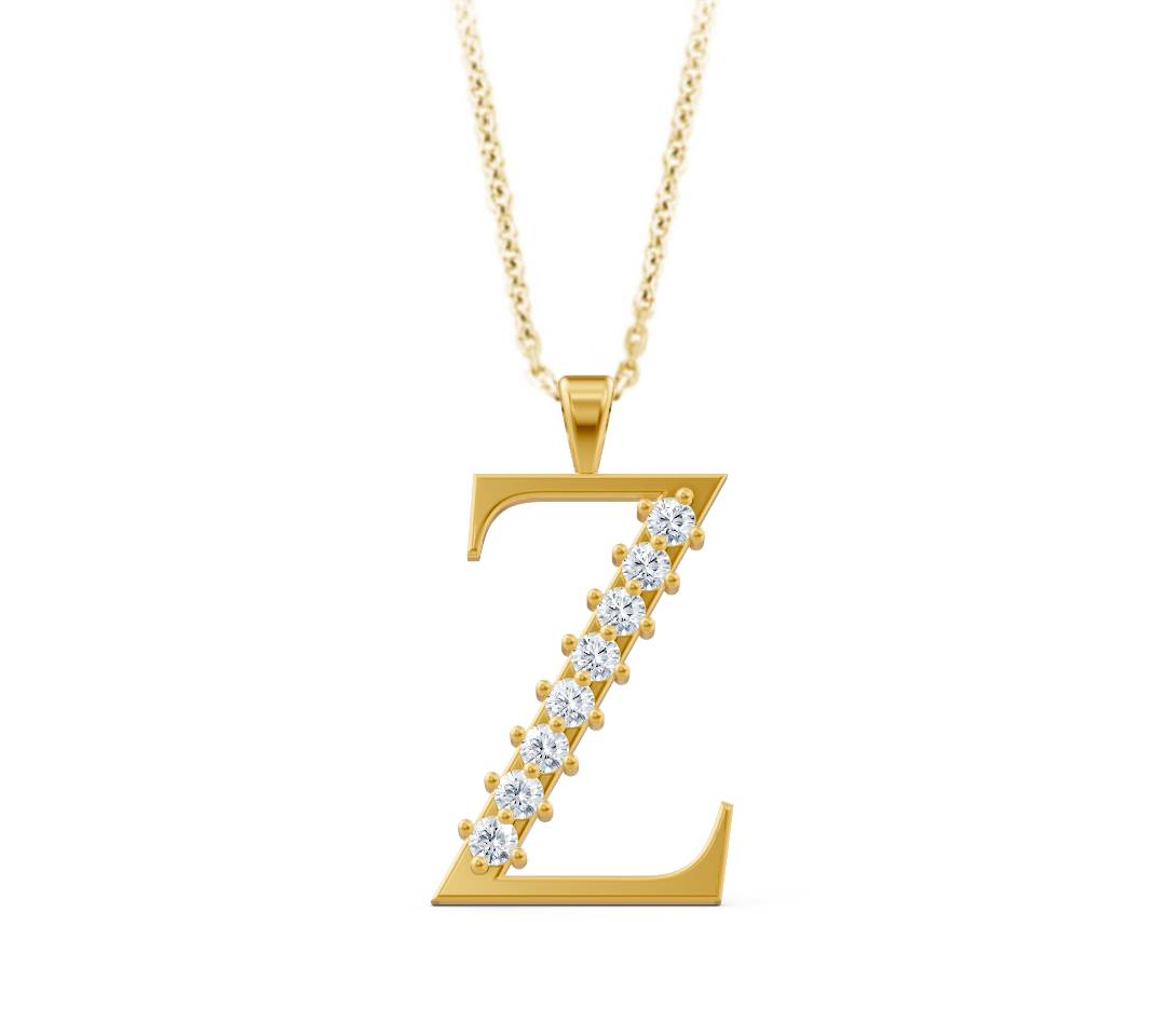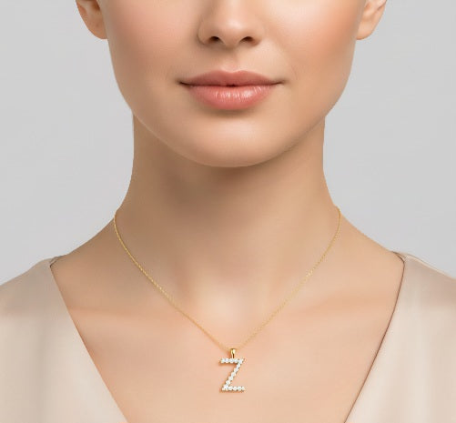 Elegante Buchstaben-Halskette Z aus 14 Karat Gelbgold mit echten Diamanten