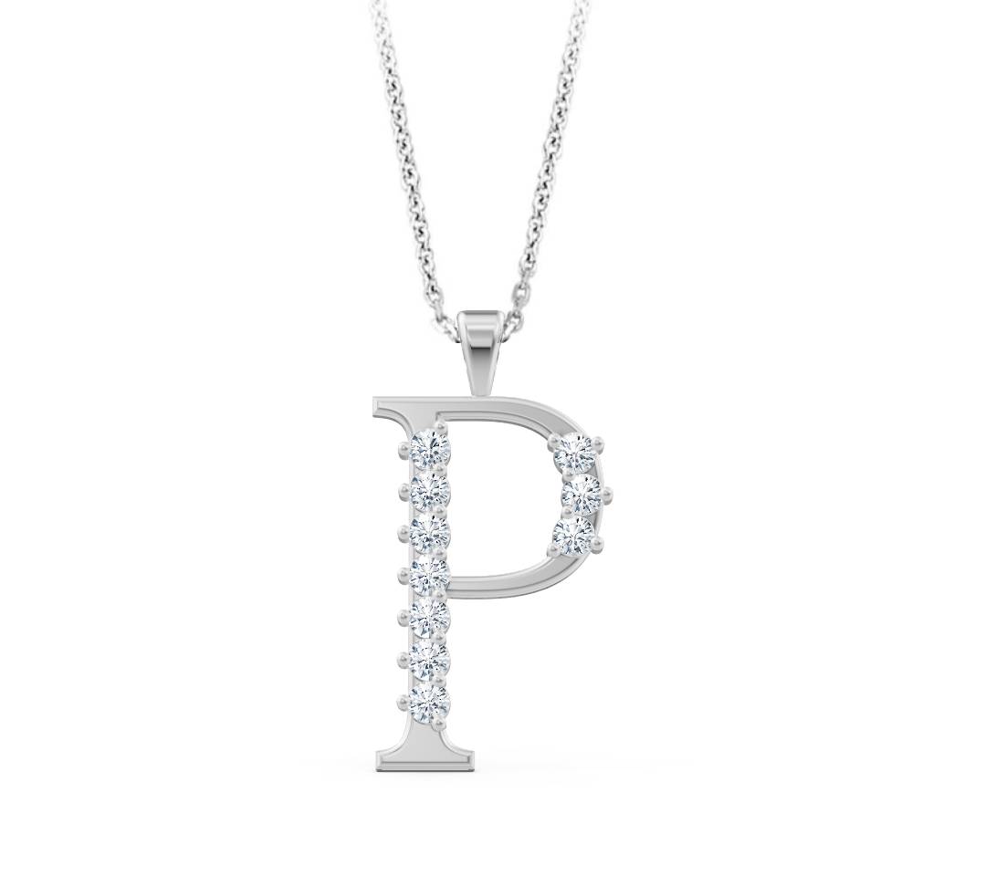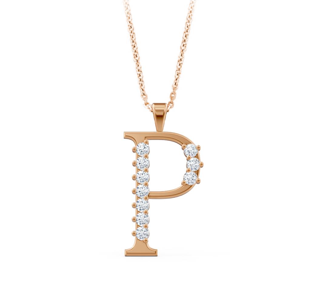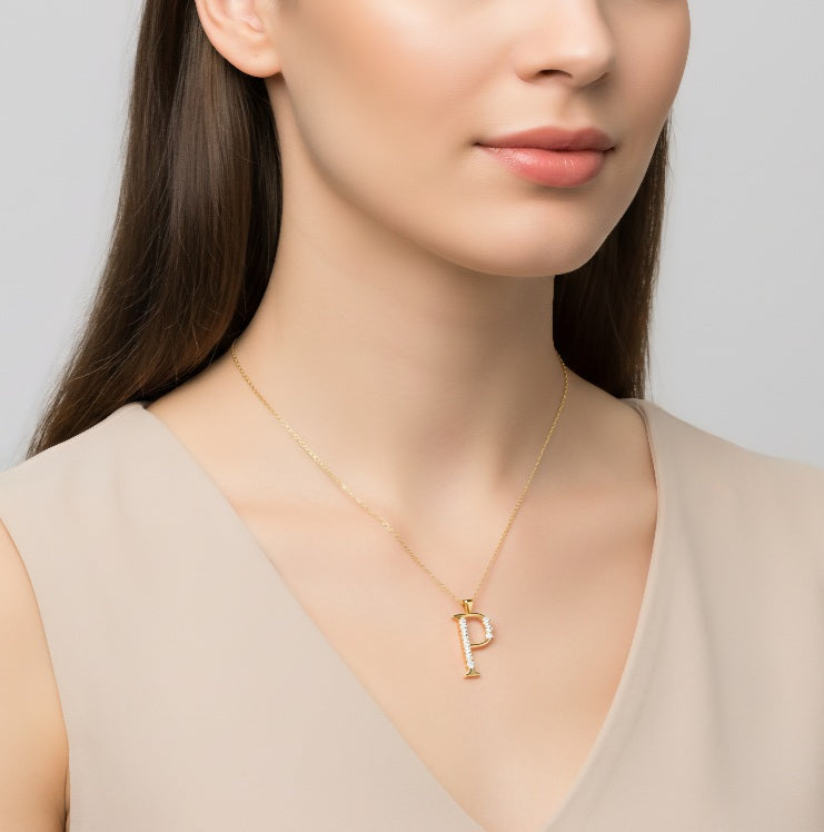 Edle Halskette Buchstabe P – 14K Gelbgold mit 0,12ct Echten Diamanten
