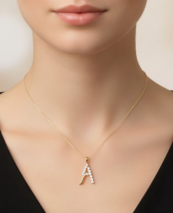 Elegante Halskette mit Buchstabe A aus 14 Karat Weißgold und echten Diamanten