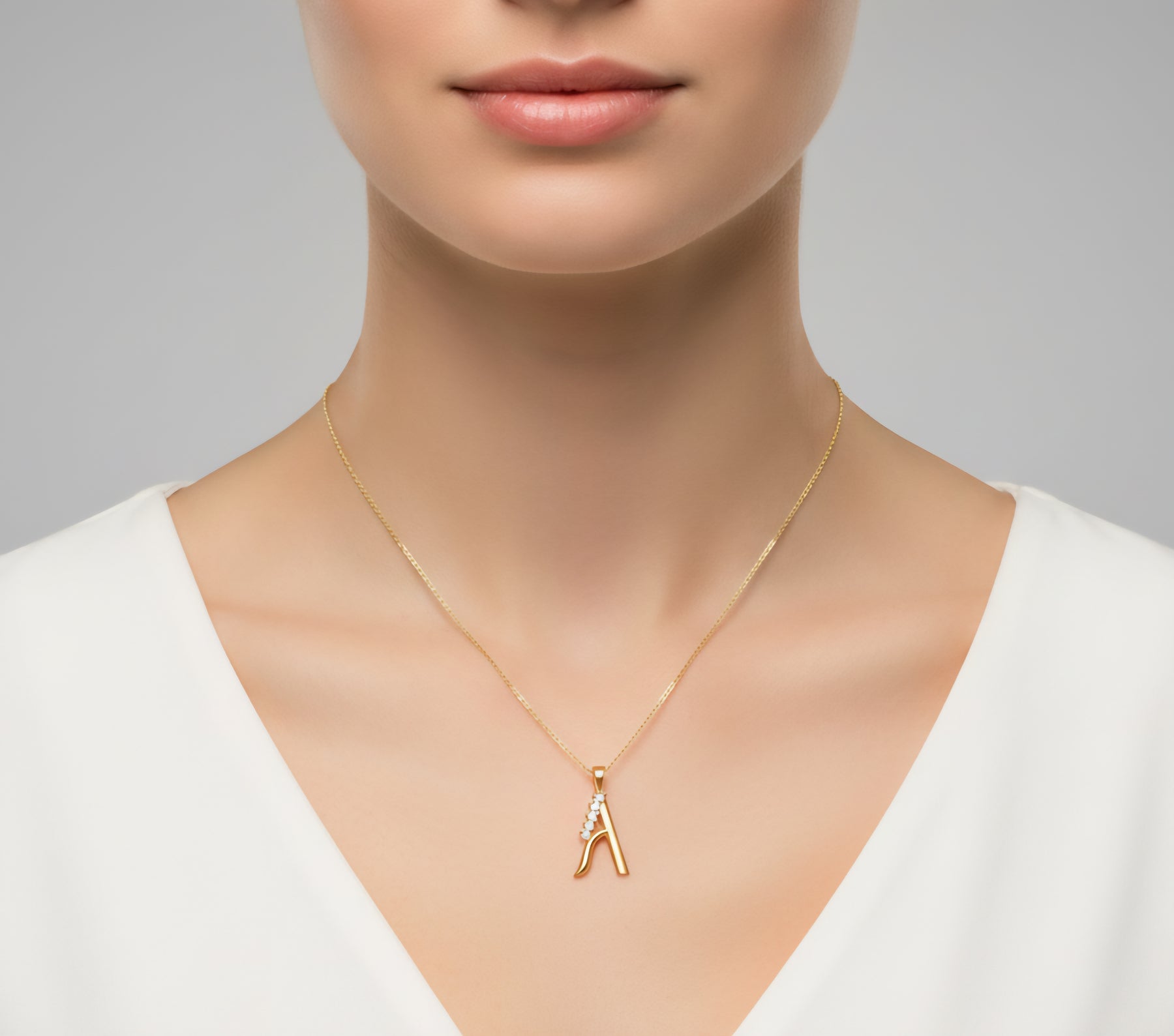 Verleihen Sie Ihrem Look eine ganz persönliche Note mit dieser luxuriösen Halskette, die den Buchstaben „A“ in den Mittelpunkt stellt. Gefertigt aus hochwertigem 14-karätigem Weißgold, besticht dieser Anhänger durch sein modernes Design und seine erstklassige Verarbeitung. Der Buchstabe ist kunstvoll mit fünf handverlesenen, echten Diamanten im Brillantschliff besetzt, die zusammen ein Gesamtgewicht von 0,10 Karat aufweisen.