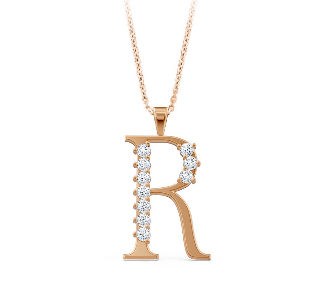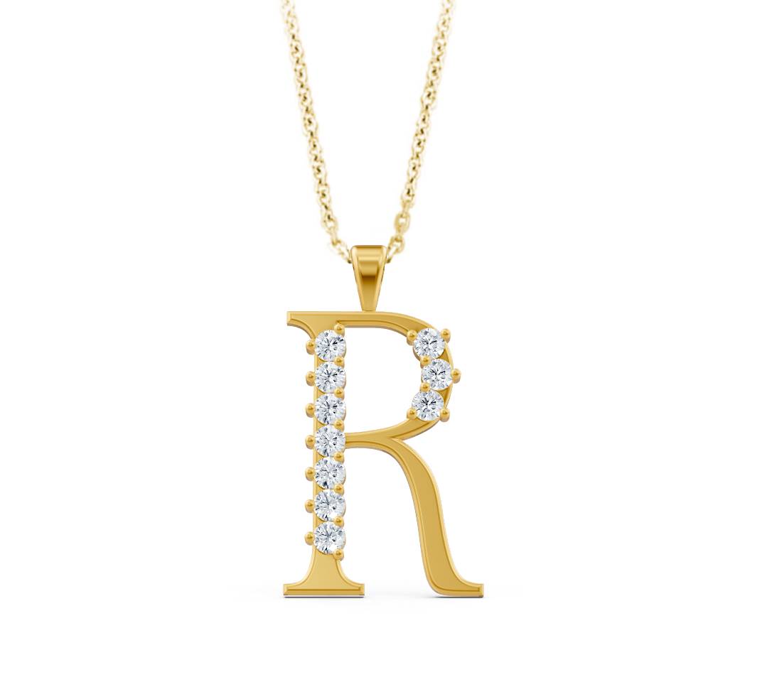 Prachtvolle Buchstaben-Halskette R aus 14 Karat Gelbgold mit echten Diamanten